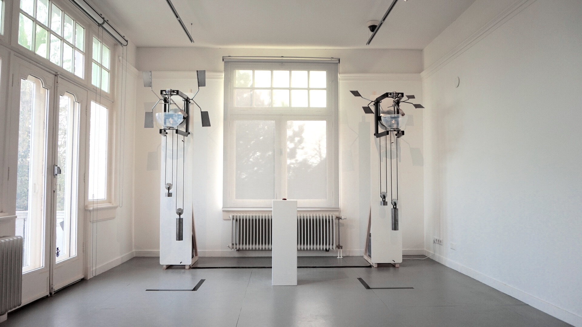 'Binaural' is a mechanical sound experience which creates two tones acoustically. Together they generate a 'beating' which is inspired by the phenomenon Binaural Beats. This phenomenon is created by two constant tones with a small difference in frequency. These tones will interfere with each other, creating a waving sound called ‘beating’. Experiments on creating frequency-fixed tones acoustically, has opened up an untraditional way of working with glass.
